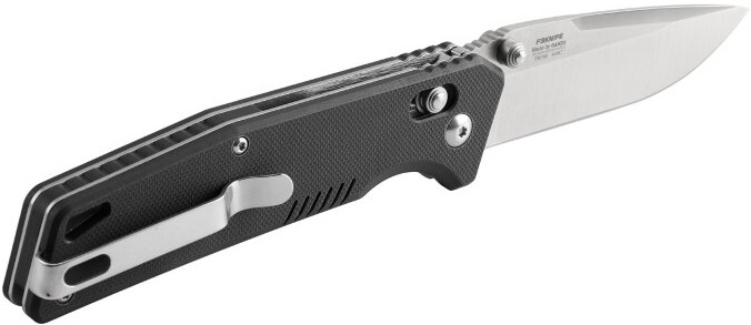 Mânerul la modelul Firebird FB7601 este realizat cu suprapuneri G10. Acest material compozit ușor este remarcabil de durabil. În plus, nu se udă, nu se estompează la soare și este în general foarte rezistent. Aceasta este o alegere bună pentru un cuțit de camping. Mânerul este alunecat prin moletarea unui model geometric mic pe suprafața G10. Există și o clemă care vă permite să fixați cuțitul.