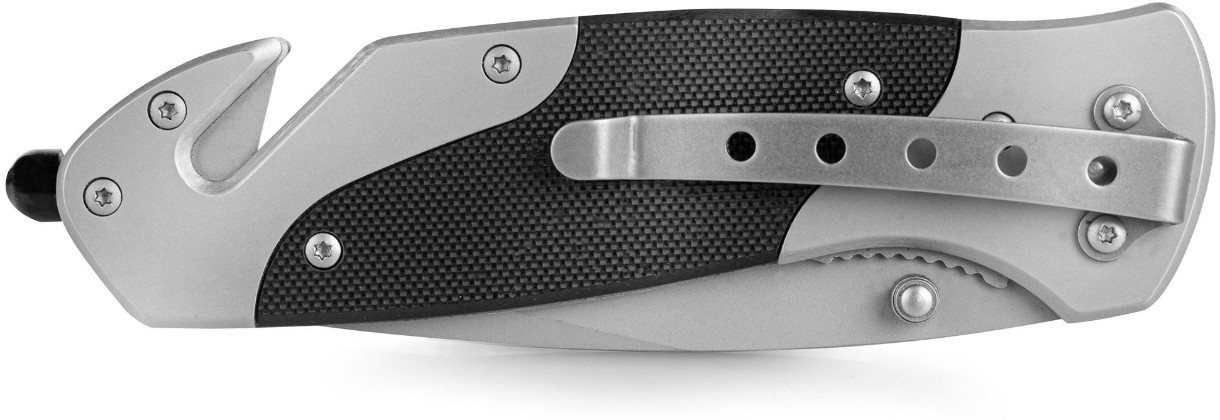 Știați că fiecare șofer din mașină ar trebui să aibă un cuțit care să ajute la tăierea centurilor de siguranță în caz de situații periculoase? Secundele sunt deseori importante, deci trebuie să ieșiți din mașină cât mai repede posibil. Cuțitul pliabil Spokey SPIDER este un instrument care va funcționa excelent într-o situație de criză. Acesta a fost conceput pentru a vă permite să tăiați ușor și rapid centurile blocate și, astfel, să vă permiteți să ieșiți rapid din vehicul. În plus, SPIDER este echipat cu sticlă care se poate sparge!