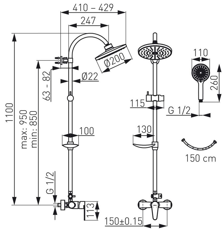 Inălțime maxima montarii1100 mm