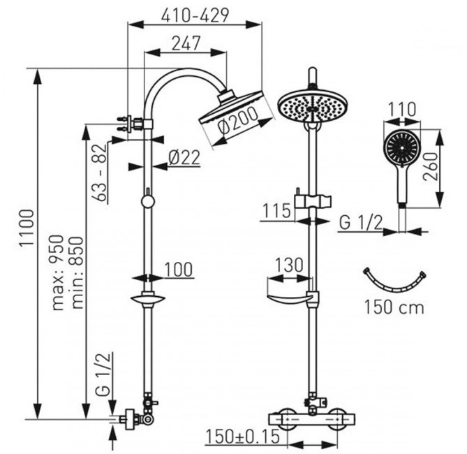 Inălțime maxima montarii1100 mm