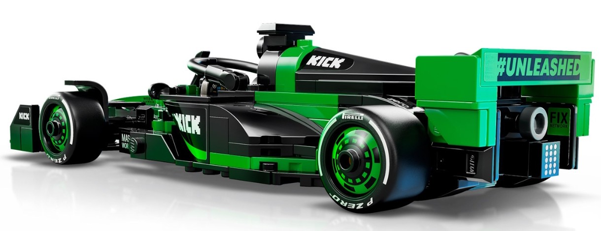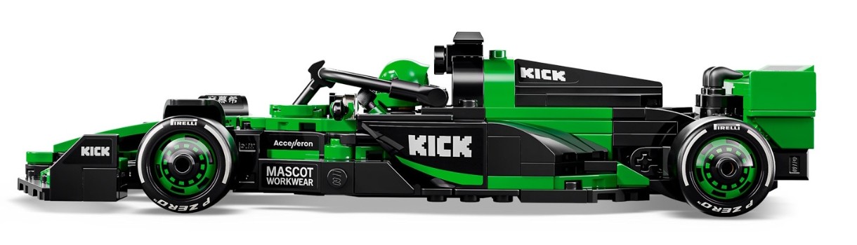 Mașina de jucărie de Formula 1 are un cockpit care se deschide atunci când bara transversală este ridicată, suspensie pe aripă spate și braț transversal, autocolante pentru sponsori și anvelope spate mai late cu inscripții Pirelli. Mașina de curse construibilă include, de asemenea, o minifigurină pilot îmbrăcată într-o uniformă a echipei KICK Sauber Formula 1 și o cască cu aripi care se potrivește în cockpit.