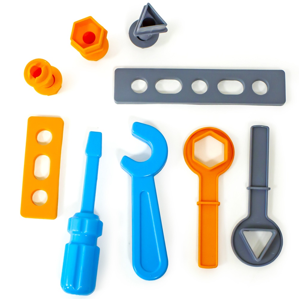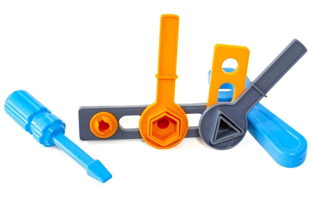 Un set de unelte pentru copii îl va ajuta pe băiat să se simtă ca un bărbat adevărat. Copilul va putea să-și repare toate jucăriile, să ajute adulții cu treburile casnice, la dacha sau în garaj. Jocurile de rol ajută copilul să stăpânească noi roluri sociale, să dezvolte imaginația, fantezia, logica, să antreneze abilitățile motorii fine, să dezvolte percepția vizuală a copilului, coordonarea mișcărilor. Setul include: o bară scurtă, o bară lungă, chei sculptate pentru piulițe, piulițe și șuruburi, o cheie fixă și o cheie fixă pentru copii.