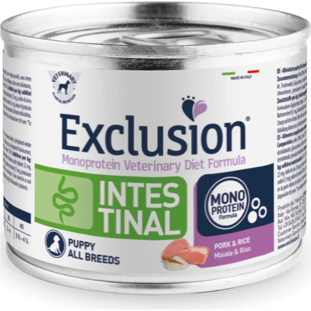 Hrană umedă pentru câini Exclusion Intestinal Puppy All Breeds Pork&Rice 200g