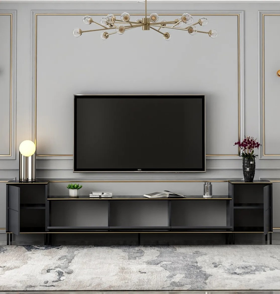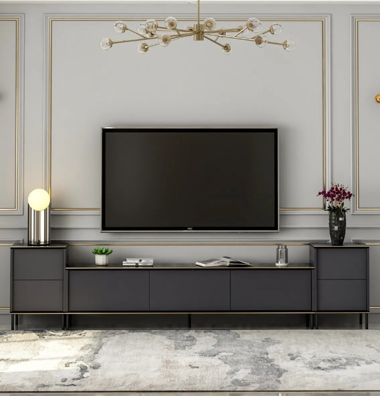 Comodă TV Trendy Imaj Anthracit/Gold/Black 260x60x35cm GTR006462