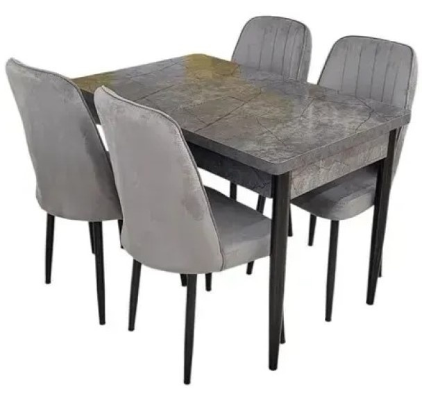 Set masă și scaune Magnusplus Modern 70x110/140 Aris Antrasit + 4 Karegold Gray Black Metal Legs