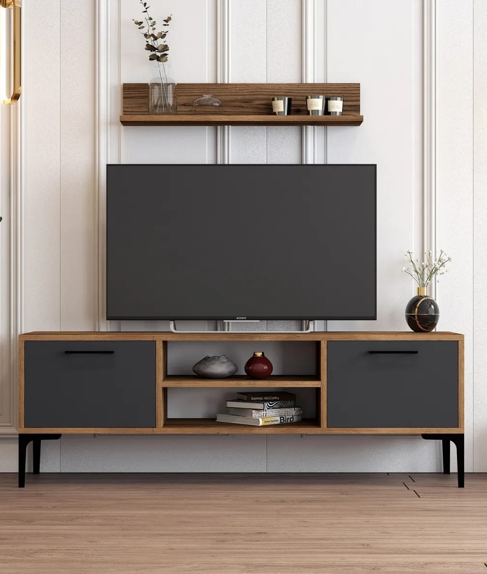 Comodă TV Trendy Riga Walnut/Anthracit/Black 140x48x30cm GTR000054