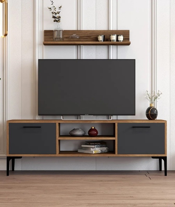 Cu un design modern și liniar, această unitate TV îmbunătățește instantaneu estetica zonei de locuit. Liniile curate oferă o notă rafinată, potrivită pentru interioare contemporane. Picioarele metalice asigură o bază solidă, iar mânerul din plastic adaugă un detaliu discret și plăcut.