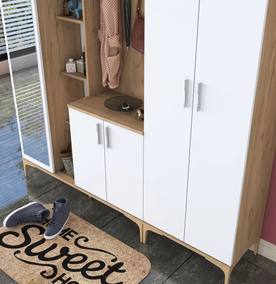 Spuneți adio intrărilor dezordonate și întâmpinați organizarea eficientă. Suportul pentru hol oferă multiple rafturi și compartimente, asigurând spațiu suficient pentru paltoane, pălării, genți și alte obiecte esențiale. Totul rămâne la îndemână și organizat, facilitând rutina zilnică.