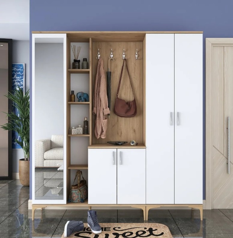 Spuneți adio intrărilor dezordonate și întâmpinați organizarea eficientă. Suportul pentru hol oferă multiple rafturi și compartimente, asigurând spațiu suficient pentru paltoane, pălării, genți și alte obiecte esențiale. Totul rămâne la îndemână și organizat, facilitând rutina zilnică.