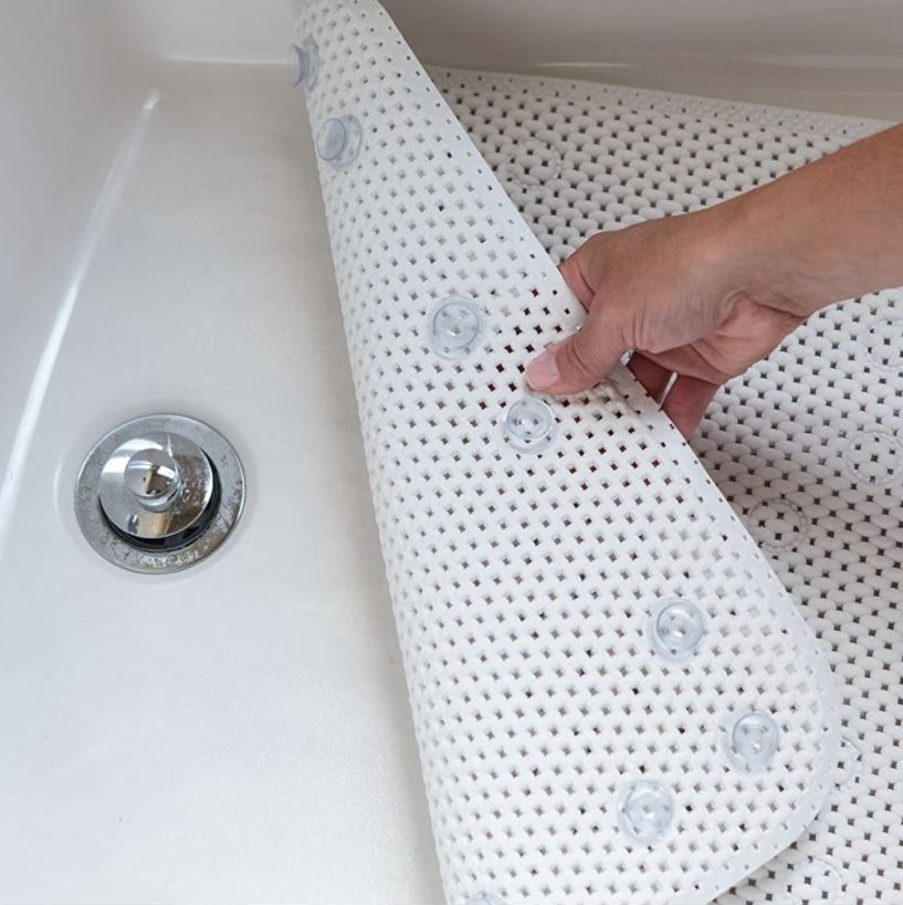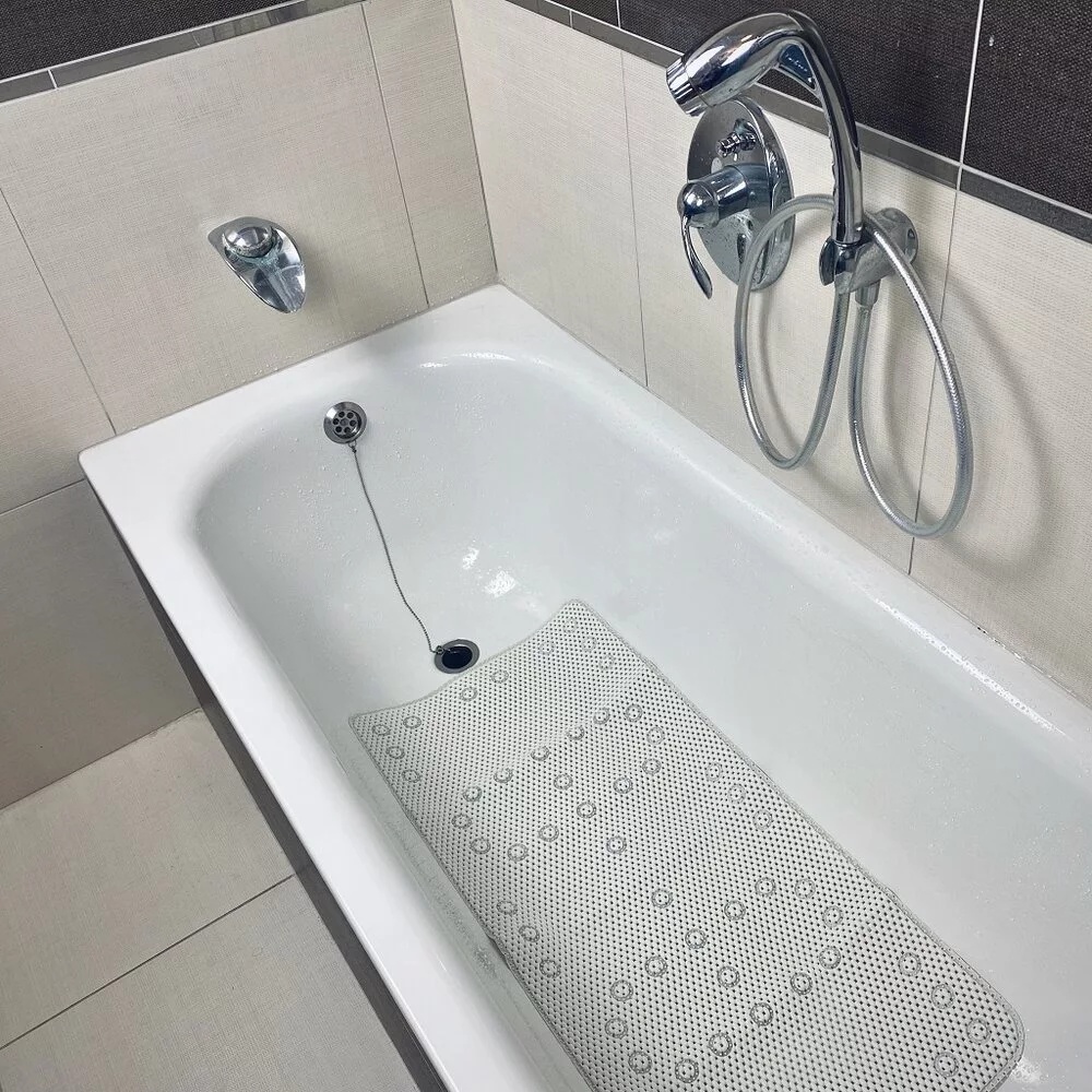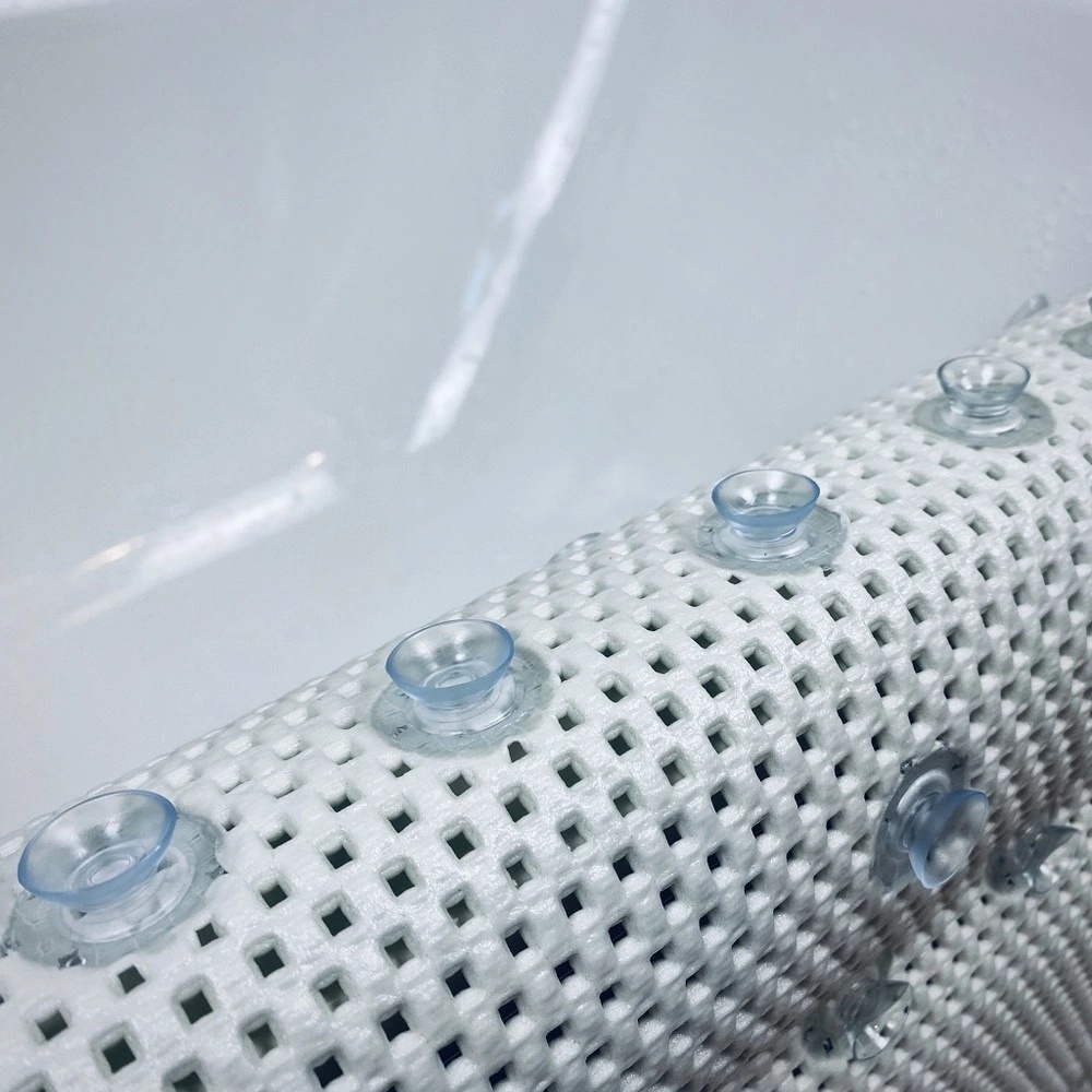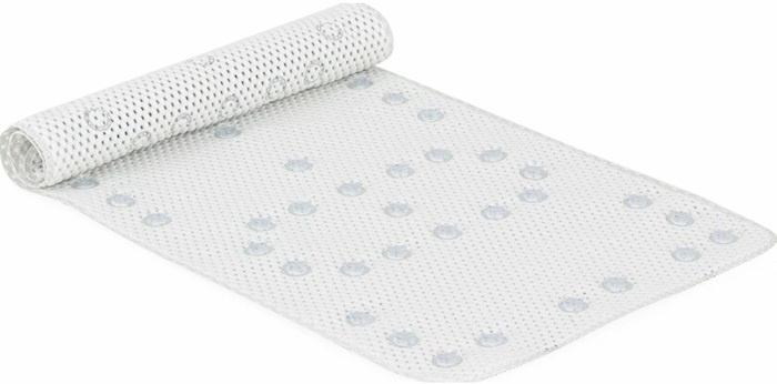 Covorașul antiderapant pentru cadă Petite&Mars Harry White 91x43 cm este un accesoriu practic care asigură siguranța copilului în timpul băii. Este prevăzut cu numeroase ventuze pe partea inferioară, datorită cărora se fixează ferm pe suprafața netedă a căzii sau dușului. Suprafața moale și antiderapantă previne alunecarea chiar și atunci când este udă. Dimensiunea mare permite acoperirea aproape completă a fundului căzii, oferind stabilitate și confort. Orificiile speciale permit circulația apei și ajută la prevenirea formării mucegaiului. Produsul este realizat din PVC de calitate, fiind ușor și cu uscare rapidă. Este potrivit pentru copii începând cu aproximativ 6 luni și poate fi utilizat în majoritatea căzilor standard.