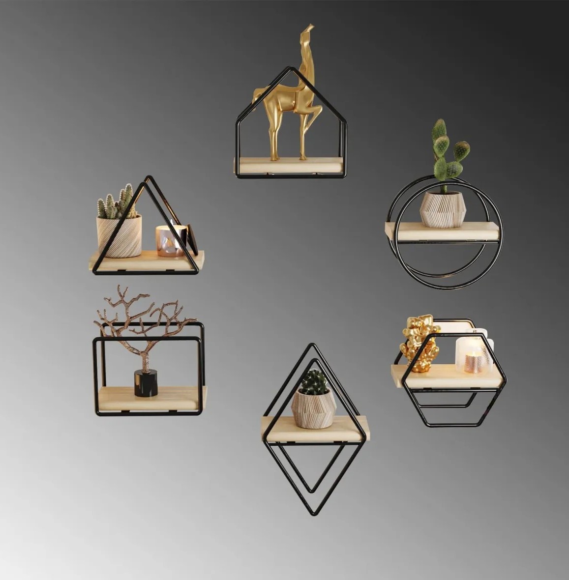 Raft de perete Trendy Minyatur Oak/Black 15x15x9cm GTR005566 6pcs