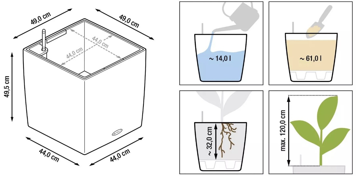 Dimensiunea interioară a giveciului44х44 cm