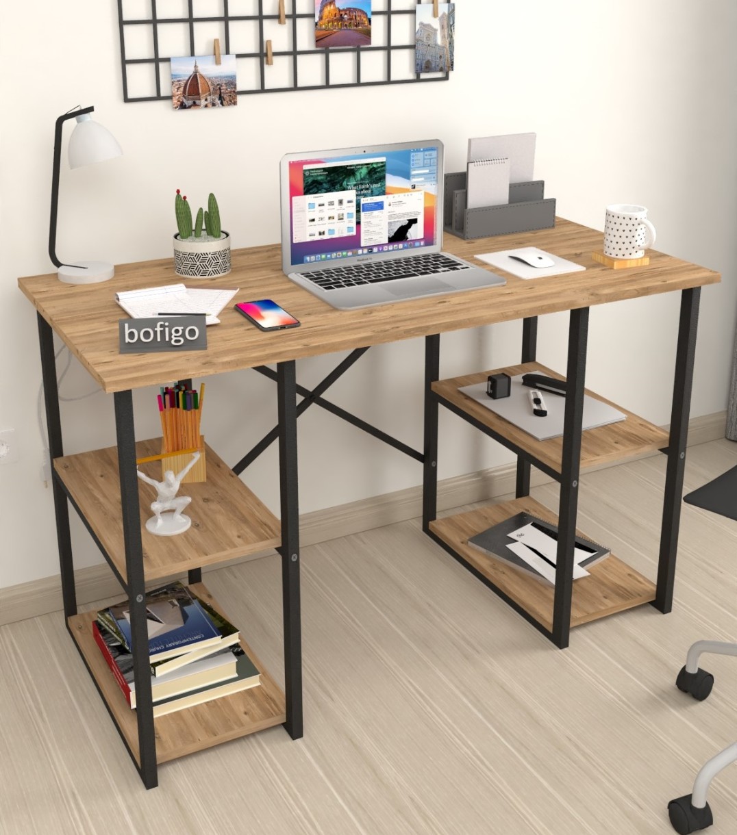Nu se limitează doar la studiu, biroul nostru de studiu este o piesă de mobilier versatilă, care poate fi folosită în diverse scopuri. Fie că aveți nevoie de un birou de scris, de o stație de lucru pentru calculator sau de un loc unde să vă ocupați de hobby-urile dvs. Cadrul său metalic robust asigură durabilitate și stabilitate, în timp ce panoul de particule de 18 mm grosime acoperit cu melamină oferă o suprafață netedă și durabilă.