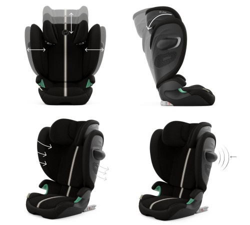 Scaunul auto Cybex Solution G2 i-Fix este mai mult decat confortabil, datorita tetierei reglabile brevetata, ce poate fi inclinata in 3 pozitii. Tetiera sprijina capul copilului atunci cand adoarme, mentinandu-l de 7 ori mai sigur in acest timp. Aripile laterale flexibile permit suficient spatiu pentru miscare, asigurand confortul si siguranta copilului pe masura ce creste.