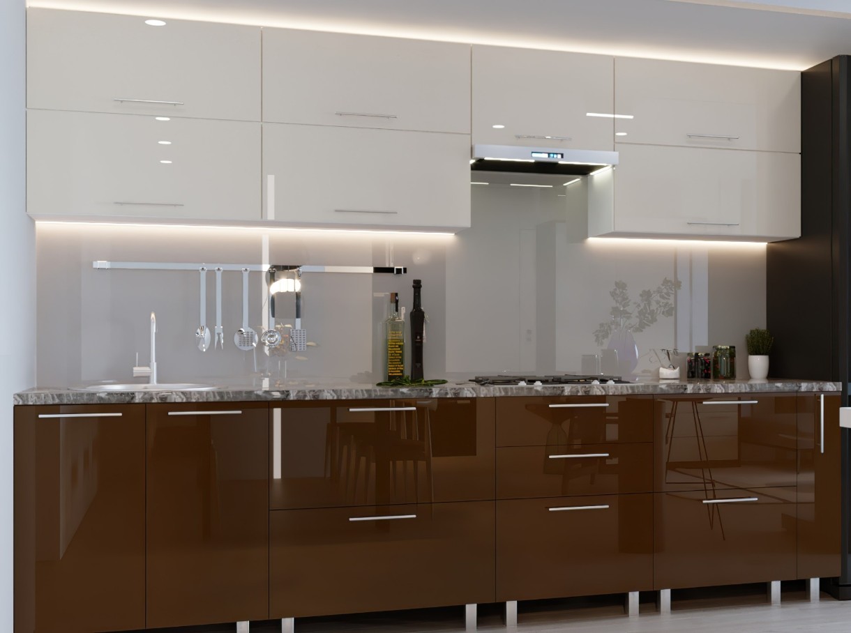 Bucătărie Bafimob Quadro (High Gloss) 3.0m +ball closer Beige/Brown