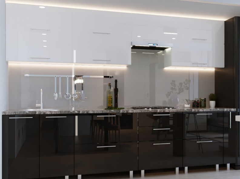 Bucătărie Bafimob Quadro (High Gloss) 3.0m +ball closer White/Black
