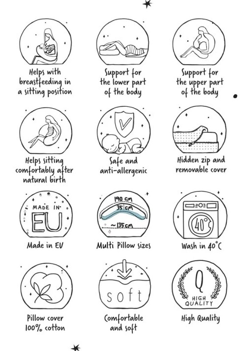 Utilizare versatilă: pentru somn în sarcină, alăptare sau susținerea bebelușului în timpul învățării statului în șezut