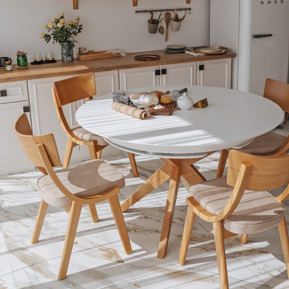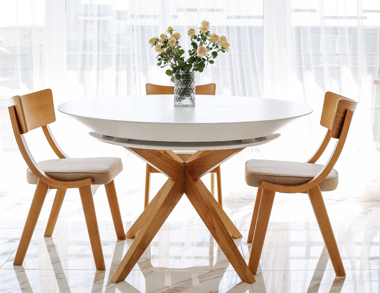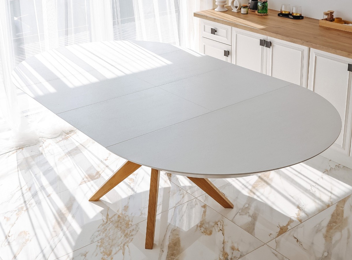 Masă pentru bucătărie Deco Nova Furnir Italian White+Wood Oak Legs