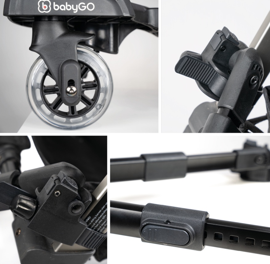 Datorita sistemului simplu de fixare, adaptorul poate fi atasat caruciorului intr-o clipita.