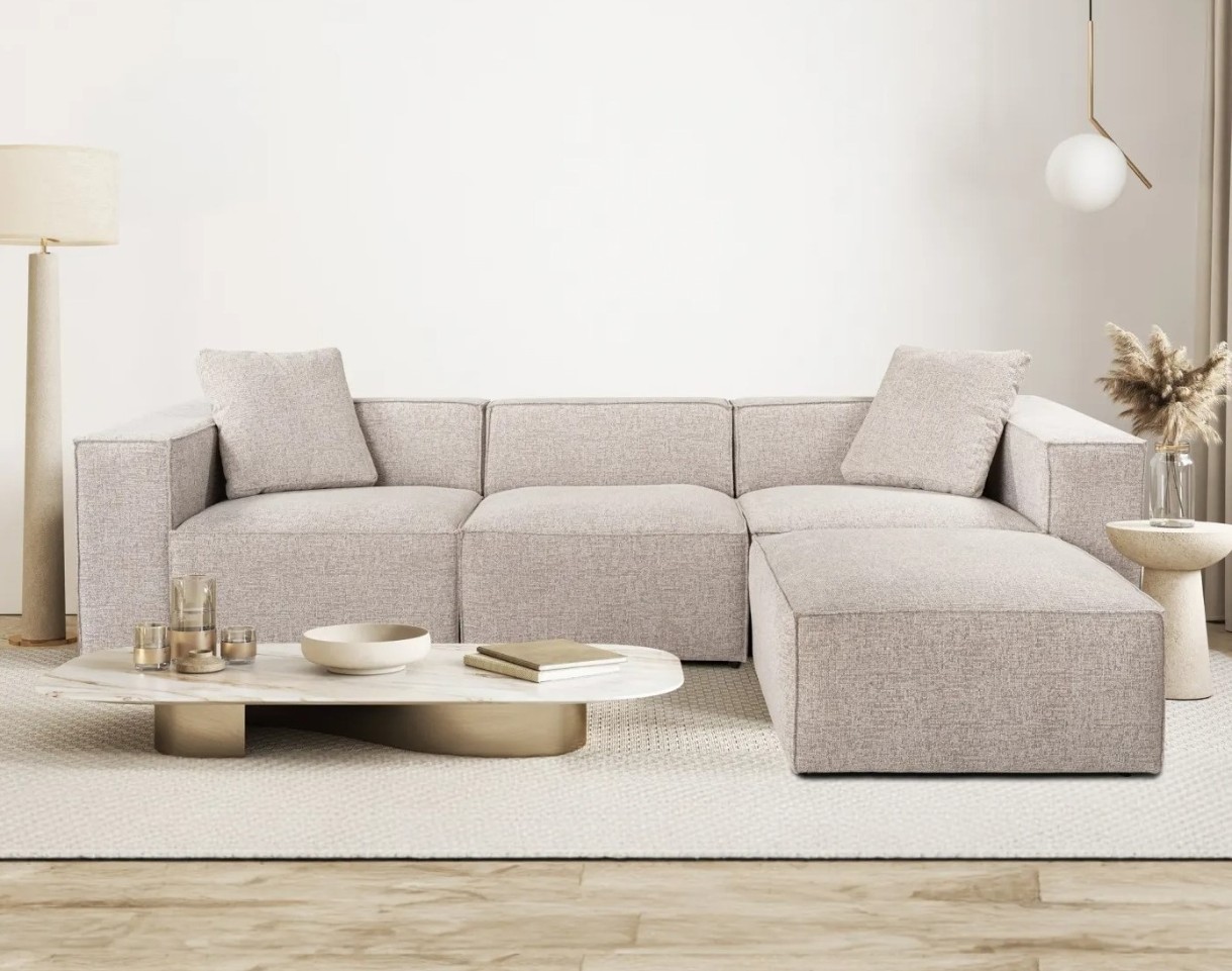 Canapea de colț Trendy Lora L1-O1-1R-POUFFE Mocha 303x193x65cm GTR003640