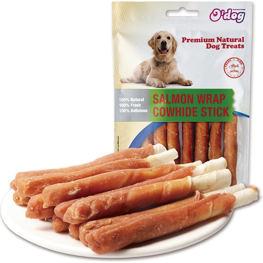 Snackuri pentru câini O'dog Salmon Wrap Cowhide Stick 100g