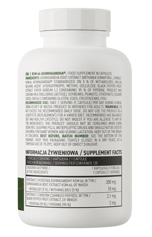 Specificații Supliment alimentar Ostrovit KSM-66 Ashwagandha 120cap
