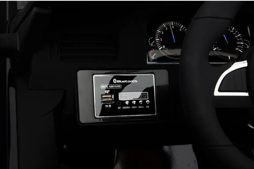 Modelul dispune de efecte luminoase și muzicale care sporesc realismul experienței, iar funcția Bluetooth permite redarea muzicii preferate direct din mașină. Controlul dublu oferă siguranță suplimentară, permițând atât controlul manual, cât și controlul prin telecomandă de către un adult.