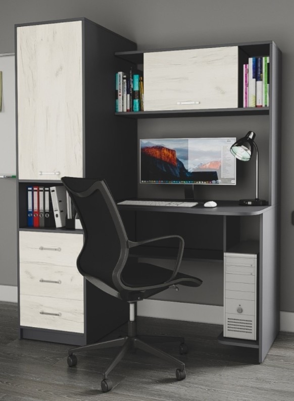 Masa de birou ML-Mobila МЛ- 5 КС-18 Antracit/Stejar Craft Alb