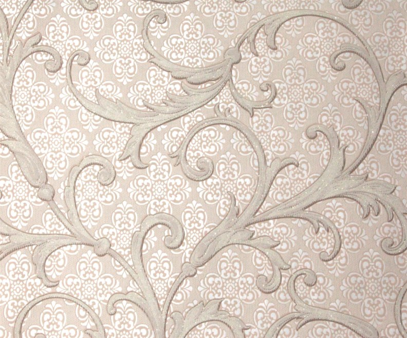 Paleta de culori este prezentată în nuanțe naturale, cu multiple variante de bej, alb festiv și o culoare grafit expresivă. Tapetul este realizat din vinil expandat pe suport vlies, cu lățimea rolei de 1,06 m.