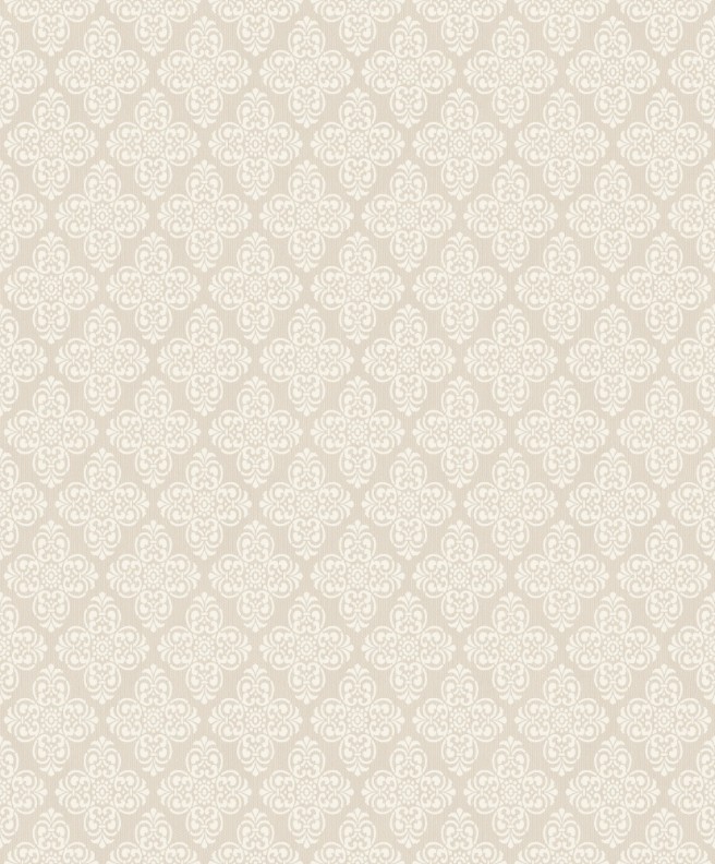 Paleta de culori este prezentată în nuanțe naturale, cu multiple variante de bej, alb festiv și o culoare grafit expresivă. Tapetul este realizat din vinil expandat pe suport vlies, cu lățimea rolei de 1,06 m.