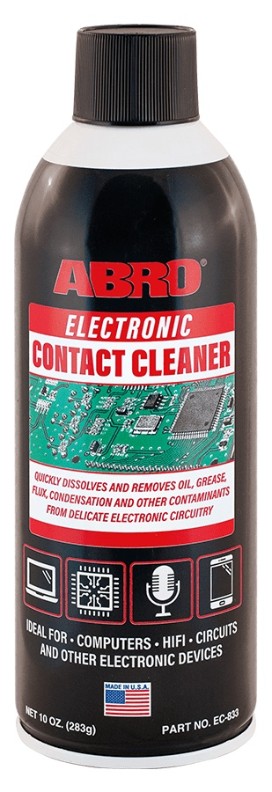 Detergent pentru contacte electronice ABRO 283 g EC-833 îndepărtează uleiul, grăsimea, murdăria, oxizii și umezeala de pe contacte electrice, comutatoare, prize, plăci electrice, instrumente de măsură etc. Nu lasă reziduuri uscate, sigur pentru majoritatea materialelor plastice. Previne deteriorarea semnalului electric și coroziunea contactelor electrice. Ideal pentru blocuri electrice și contacte din automobile și locuințe, calculatoare, echipamente audio și video, precum și pentru orice alte aparate și dispozitive electrice.