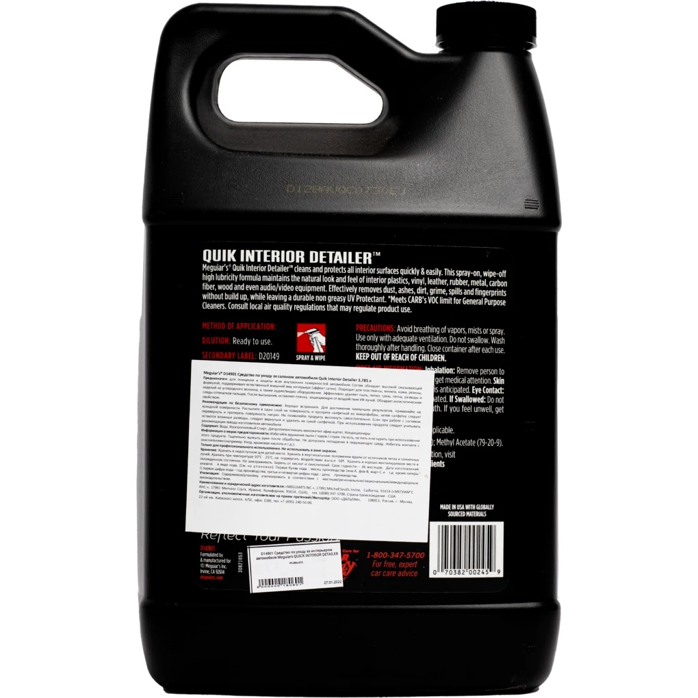 Quik Interior Detailer - un produs pentru restaurarea aspectului interior al automobilului. Curăță și protejează rapid și ușor toate suprafețele interioare. Compoziția are o formulă de lubrifiere ridicată, menține aspectul natural al interiorului (efect satinat).