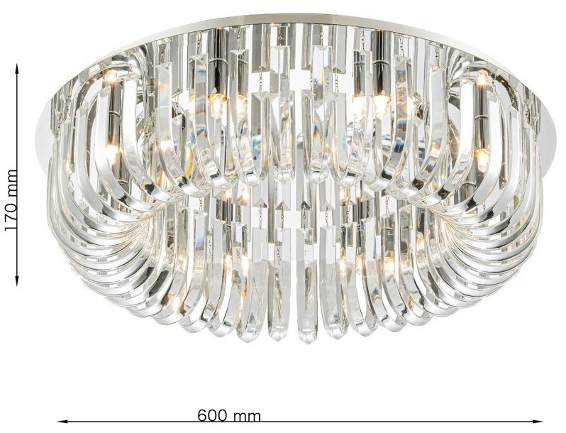 CLN131-D60C este un corp de iluminat de tavan care îmbină eleganța și modernitatea într-un design rafinat. Structura sa cromată lucioasă și tuburile de sticlă curbate creează un efect vizual impresionant, oferind o lumină caldă și sofisticată. Acest model este ideal pentru săli de mese, livinguri, holuri de hotel, restaurante și spații exclusive, adăugând o notă de lux și rafinament.