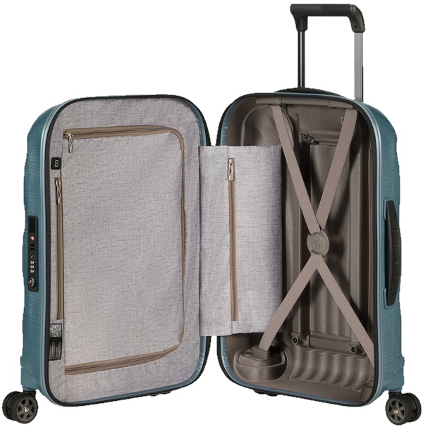Valiza Samsonite este un bagaj Curv® incredibil de ușor, care este produs în mod tradițional exclusiv în Europa. Carcasa este concepută sub forma unei cochilii de mare bine recunoscute, apărută pentru prima dată în urmă cu peste un deceniu în seria Cosmolite de la Samsonite. Acest design iconic a câștigat mai multe premii și rămâne unul dintre cele mai de succes modele din industrie până în prezent. Nu numai că merge bine cu orice culoare și arată organic cu aproape orice stil de îmbrăcăminte, dar face față și sarcinilor statice și impacturilor, revenind invariabil la forma anterioară.
