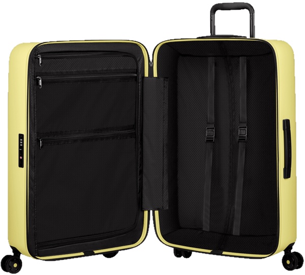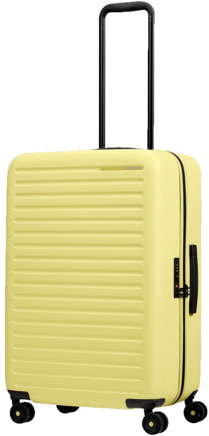 Samsonite StackD Spinner este un bagaj de călătorie urban modern, fabricat din policarbonat, un polimer ușor, rezistent și incredibil de durabil, cu un finisaj mat. Toată țesătura utilizată la producerea modelului este obținută din reciclarea recipientelor din plastic — una dintre amenințările moderne pentru mediu.