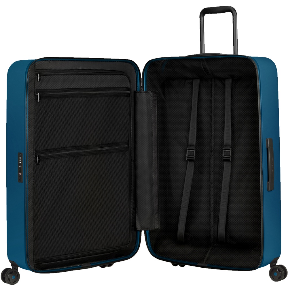 Samsonite StackD Spinner este un bagaj de călătorie urban modern, fabricat din policarbonat, un polimer ușor, rezistent și incredibil de durabil, cu un finisaj mat. Toată țesătura utilizată la producerea modelului este obținută din reciclarea recipientelor din plastic — una dintre amenințările moderne pentru mediu.