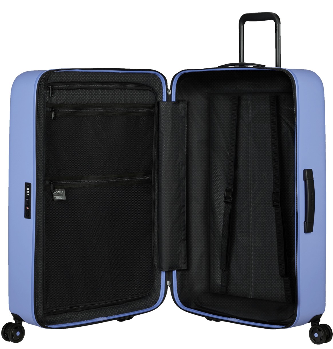 Samsonite StackD Spinner este un bagaj de călătorie urban modern, fabricat din policarbonat, un polimer ușor, rezistent și incredibil de durabil, cu un finisaj mat. Toată țesătura utilizată la producerea modelului este obținută din reciclarea recipientelor din plastic — una dintre amenințările moderne pentru mediu.
