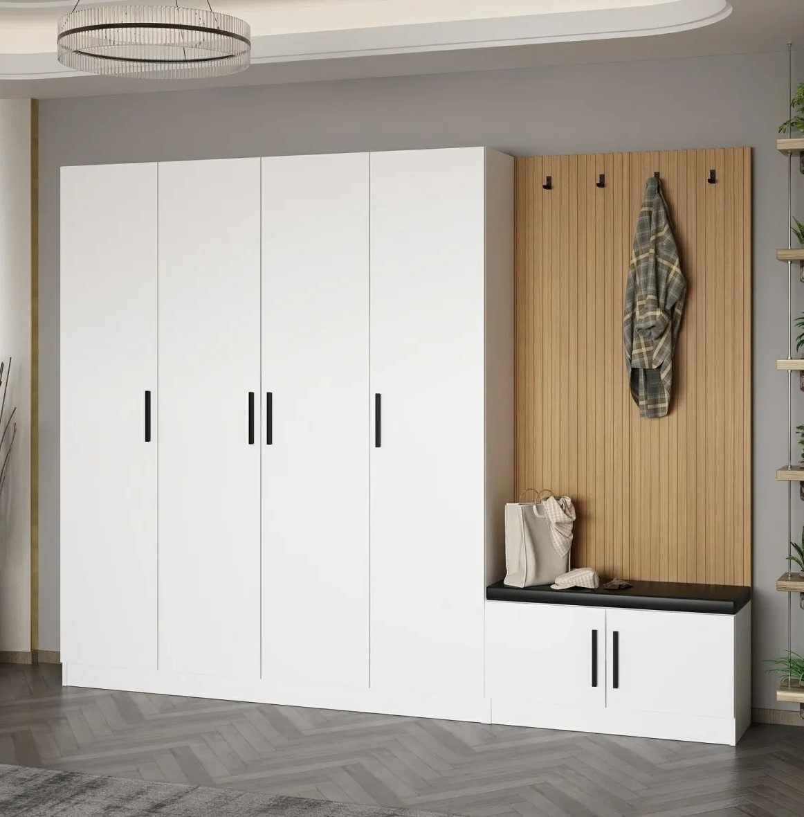 Cu o lățime de 270 cm, o înălțime de 210 cm și o adâncime de 35 cm, suportul pentru hol oferă un spațiu de depozitare generos pentru a menține holul organizat și ordonat. Rafturile și compartimentele spațioase oferă loc pentru chei, corespondență, pălării și alte lucruri esențiale, astfel încât totul să fie la îndemână.