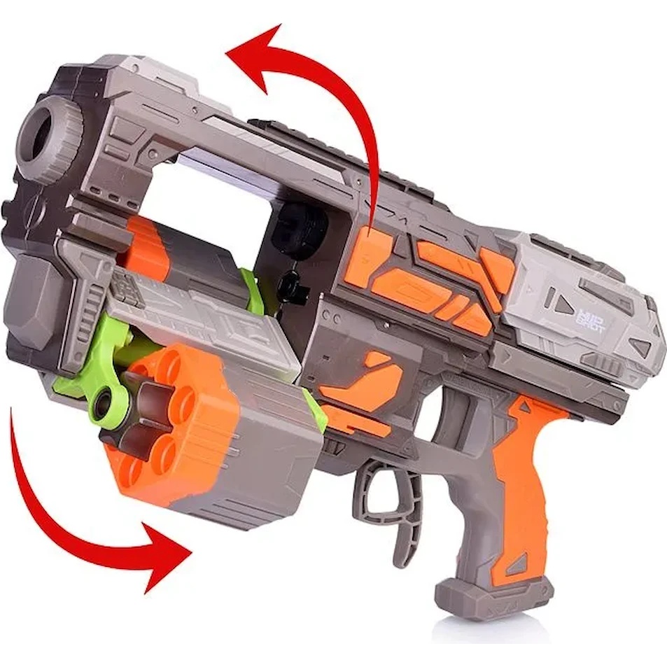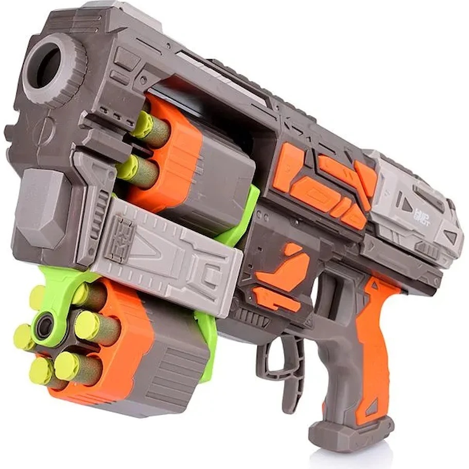 Blasterul de jucărie cu săgeți moi și magazie dublă oferă copiilor o joacă distractivă care dezvoltă precizia, reacția și coordonarea mișcărilor. Magazia dublă permite tragerea continuă, iar săgețile moi și sigure fac jocul sigur și amuzant. Blasterul este confecționat din plastic durabil, se ține confortabil în mână și este ușor de folosit. Jocul cu acest set ajută la dezvoltarea atenției, concentrării și abilităților de joc în echipă, transformând orice activitate într-o experiență activă și captivantă.