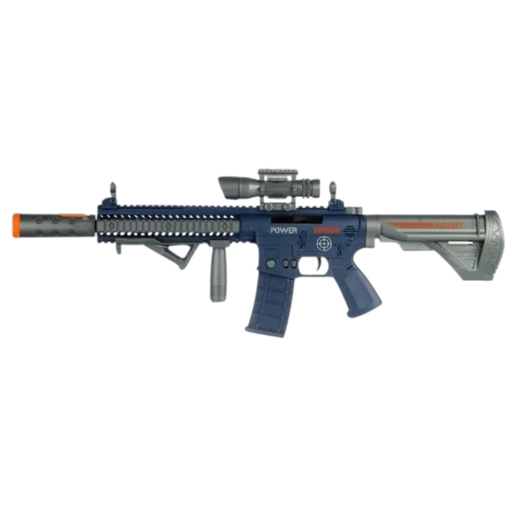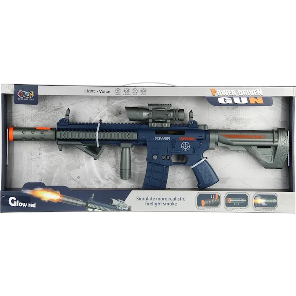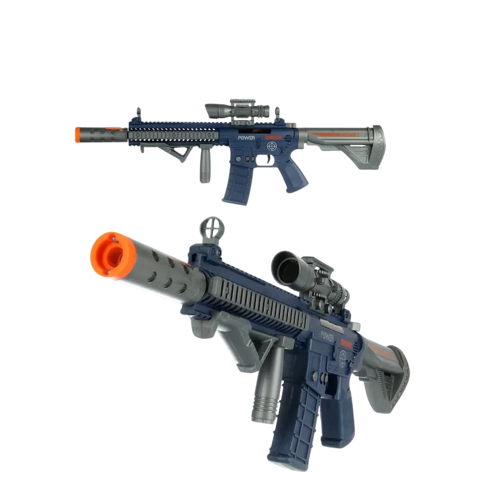 Pușcă de jucărie cu lumini, sunete și efect de abur — o jucărie spectaculoasă pentru jocuri de rol dinamice. Este dotată cu sunete de tragere și reîncărcare, iluminare, vibrații și efect de abur, oferind o experiență realistă.