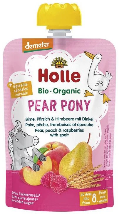 Piure delicat realizat din fructe 100%. Ideal ca gustare între mese sau în deplasare. Holle este un produs 100% natural. Acest lucru se aplică absolut tuturor componentelor produsului - fructe, legume. Absolut fiecare ingredient este cultivat biodinamic în condiții naturale.