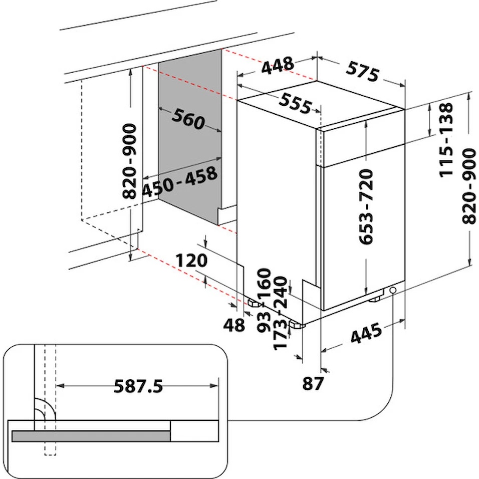 Maşină de spălat vase încorporabilă Whirlpool WSBO 3O34 PF X