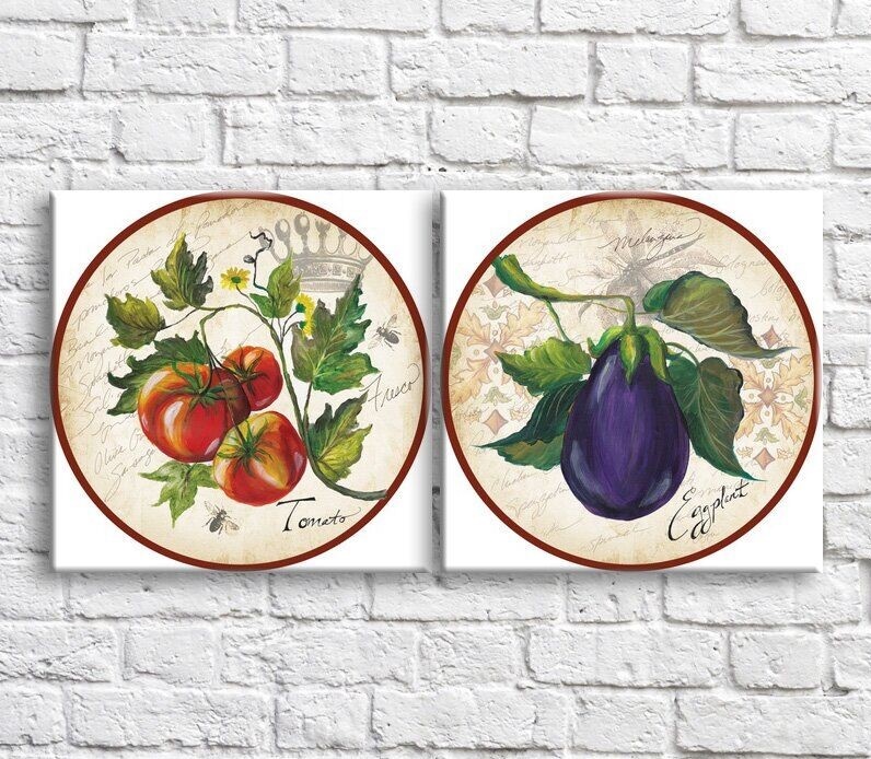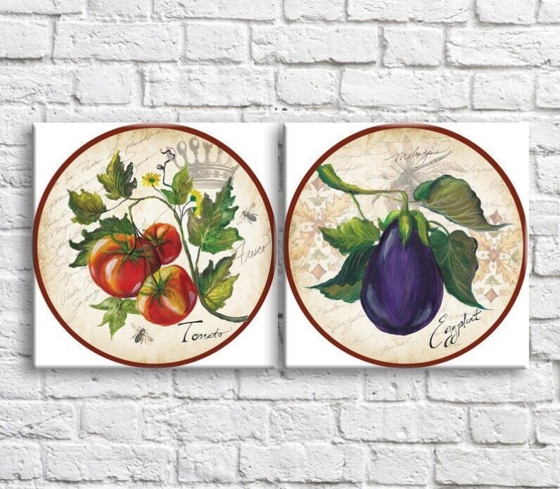 Pictură ArtPoster Eggplant and tomatoes on the background of the text (3478748)