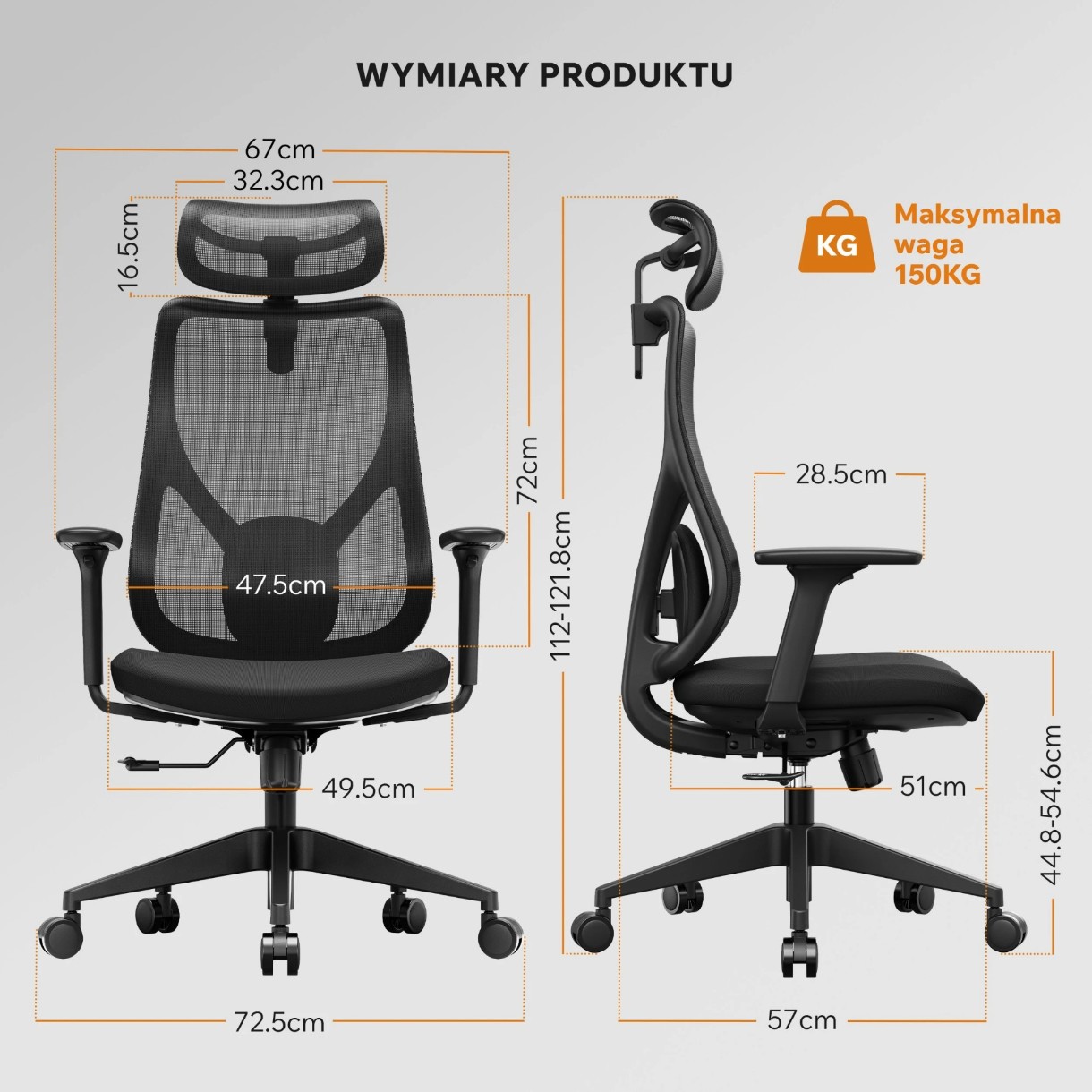 Înălţime spătar72 cm