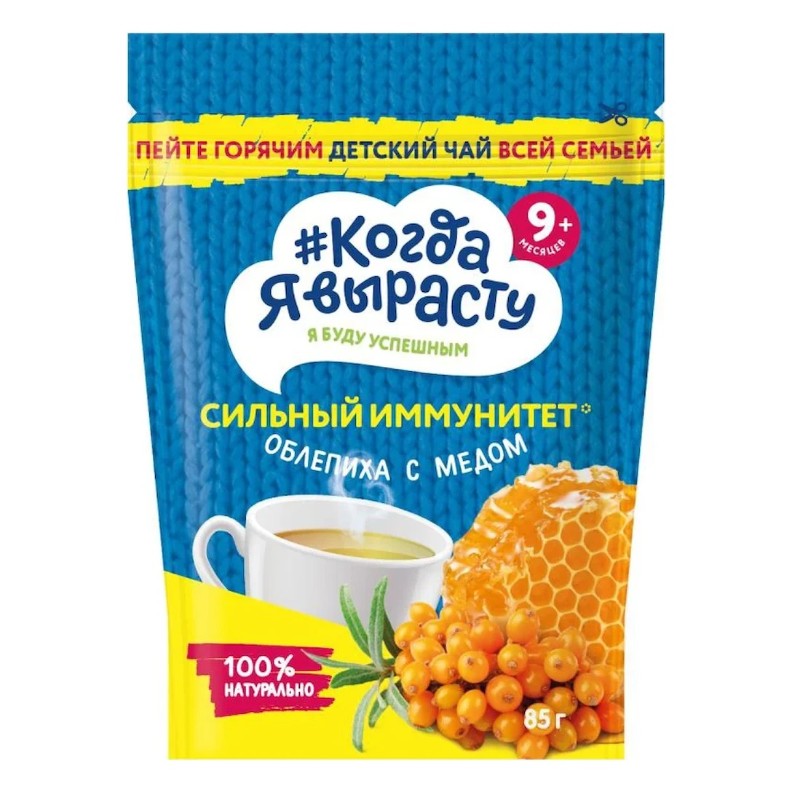 Ceai pentru copii „Imunitate puternică” cu măceșe și miere – o băutură sănătoasă pentru copii peste 9 luni. Ceaiul instant se dizolvă ușor în apă, are un gust ușor dulce și arome de măceșe și miere. Combinația de fructe benefice, extracte naturale și piure de fructe face ceaiul deosebit de util în sezonul rece.