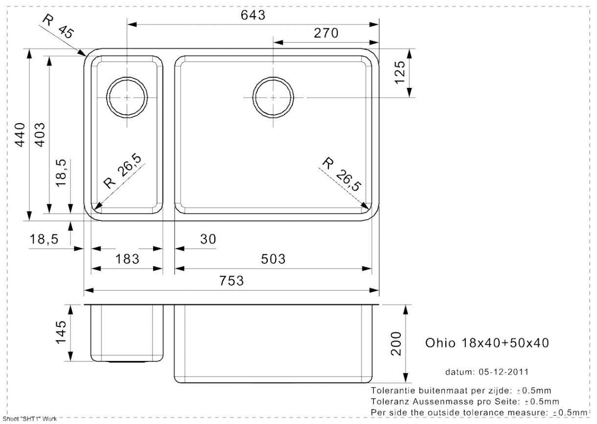 Dimensiuni cuvă auxiliară503x403 mm