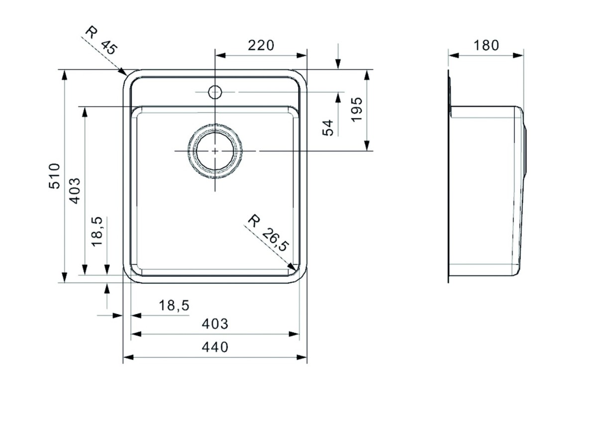 Chiuvetă de bucătărie Reginox Ohio 40x40 Tapwing (L)