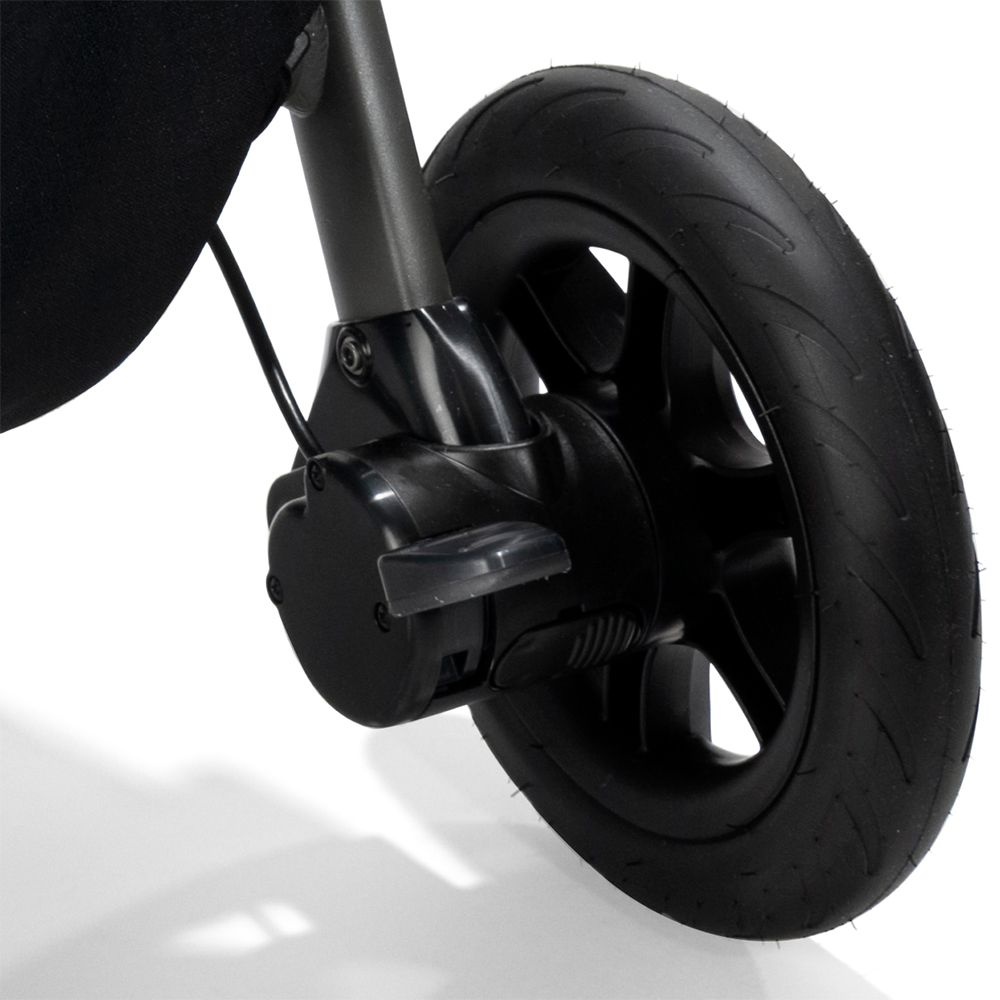 Cadrul ultra-ușor din aluminiu și roțile față pivotante la 360 de grade fac căruciorul ușor de manevrat și ușor. Roțile durabile din cauciuc spumat sunt rezistente la perforare. Un mecanism special de pliere îți permite să pliezi rapid și ușor căruciorul cu o mână, în timp ce ții copilul cu cealaltă.