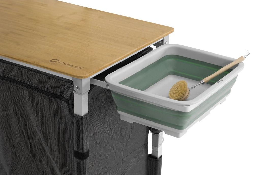 – Suprafață de lucru mare din bambus nu doar că este estetică, dar și foarte practică pentru gătit. Se curăță ușor, este rezistentă la uzură și ideală pentru prepararea mâncării sau alte activități în aer liber.