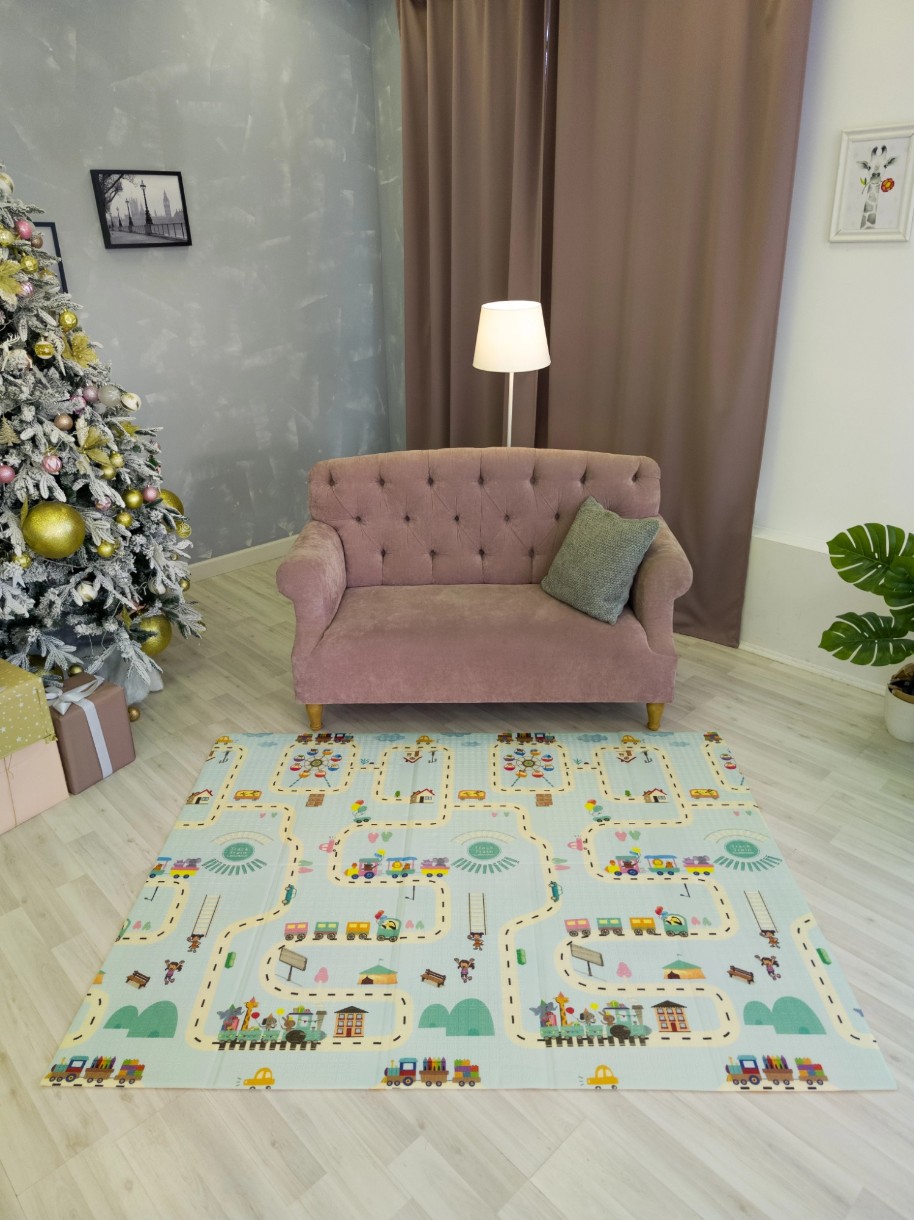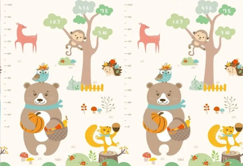 Covoraș de joacă moale pliabil cu două fețe pentru jocul în siguranță al copilului dumneavoastră. Covorașul este potrivit pentru copii de la naștere. Covorașul impermeabil are un motiv drăguț cu animaluțe, iar suprafața anti-alunecare este moale și elastică, dar stabilă ca formă.
